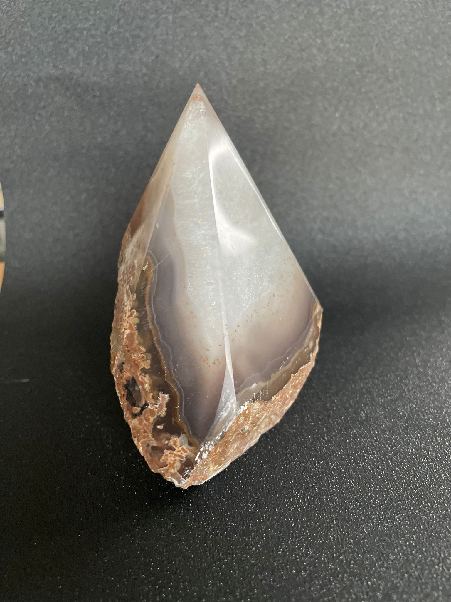 Een mooie agaatpunt van 11,5cm hoog en 347 gram.
