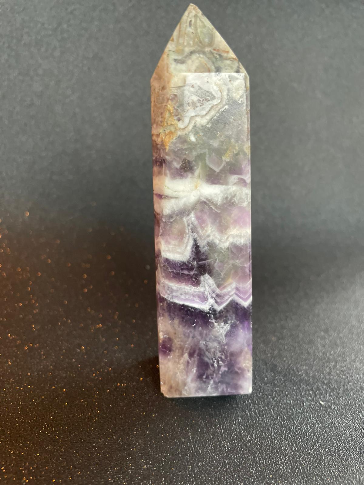 Chevron amethist toren van 12cm hoog. De toren weegt 189 gram.