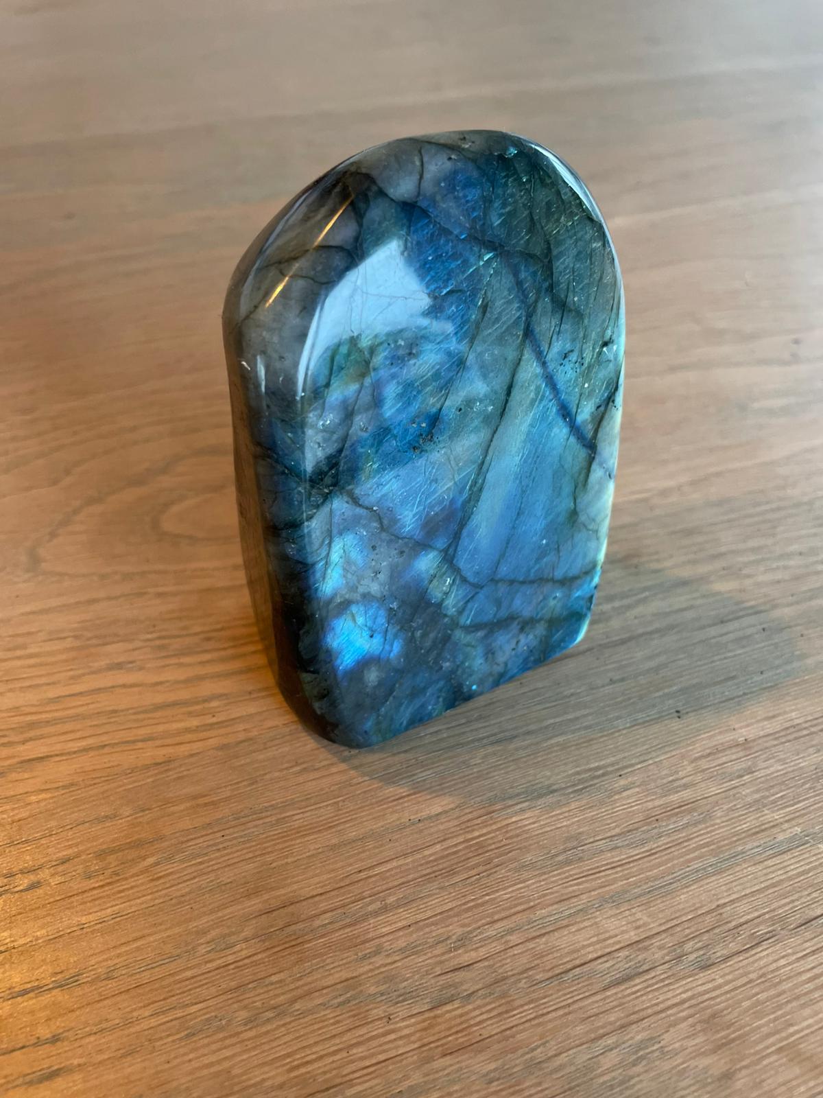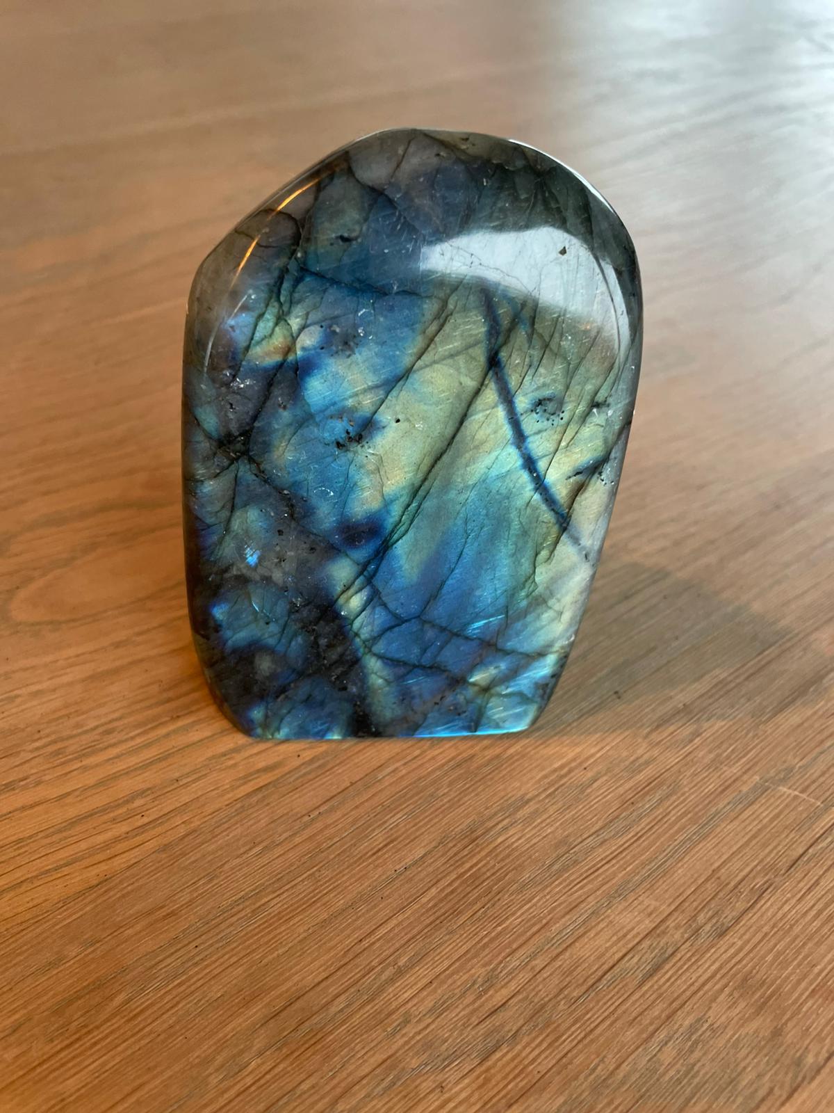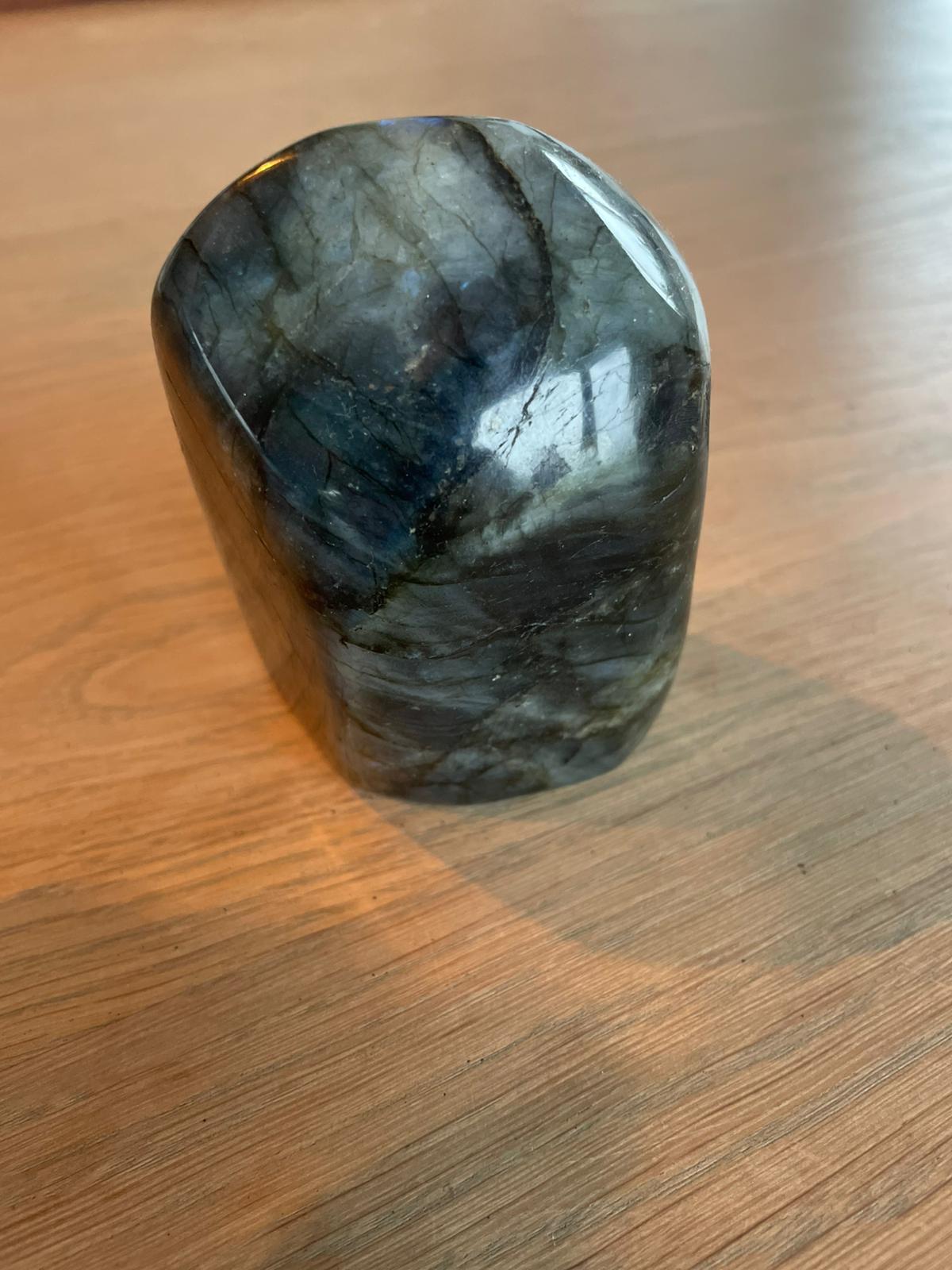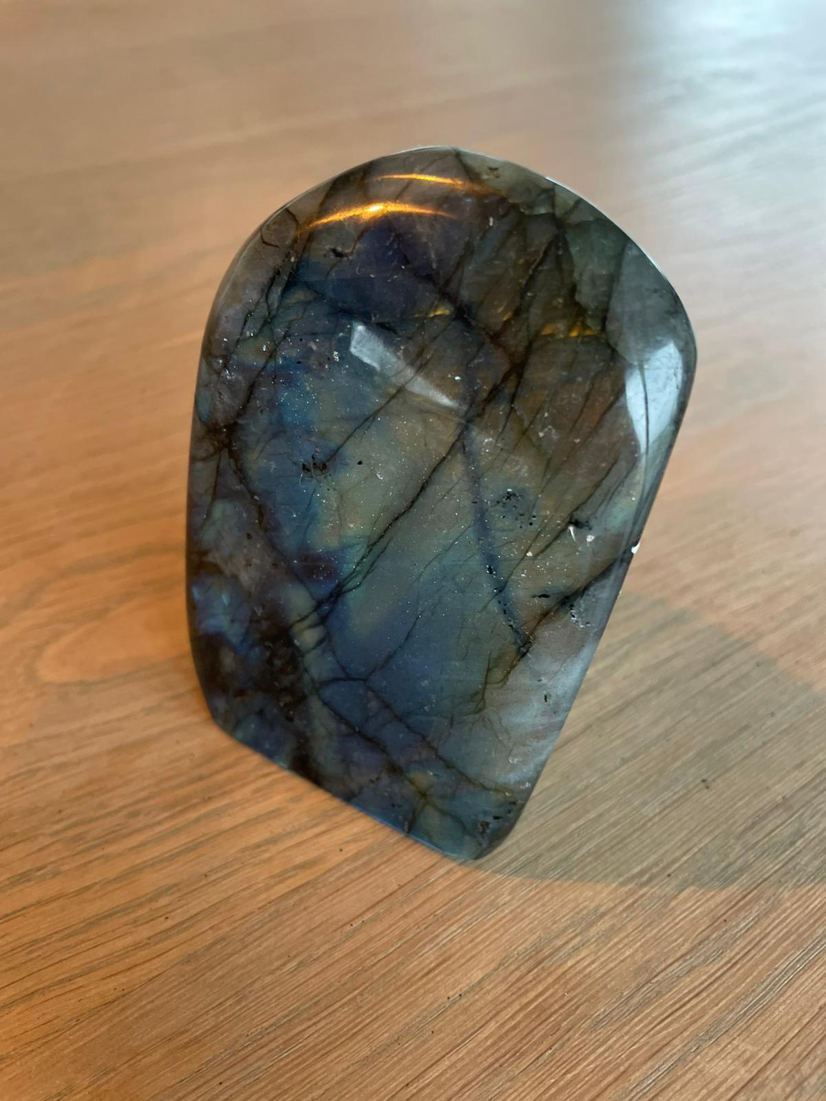 Een mooie freeform van labradoriet. De steen weegt 620 gram.