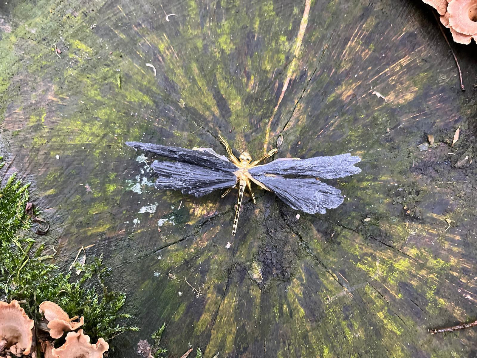 Stenen van toermalijn op een standaard in de vorm van een libelle.