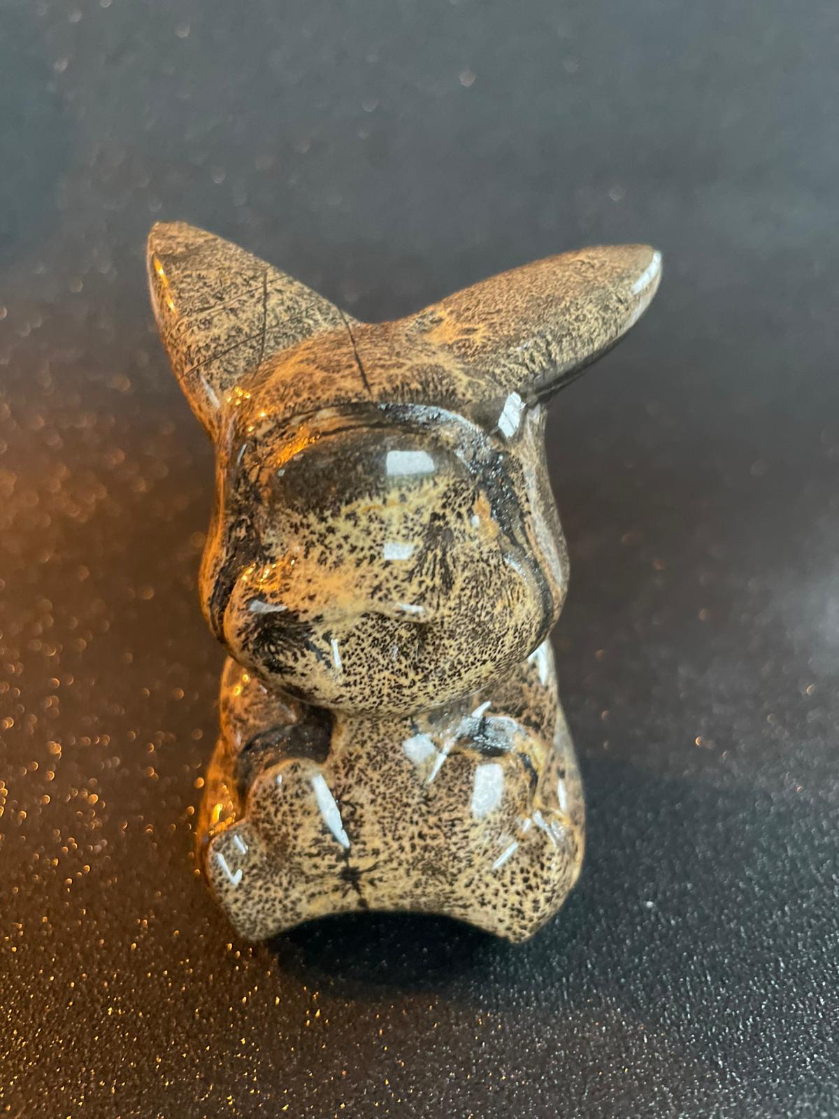 Beeldjes van verschillende steensoorten in de vorm van pikachu. De beelden zijn 9cm hoog en wegen 180-260 gram.