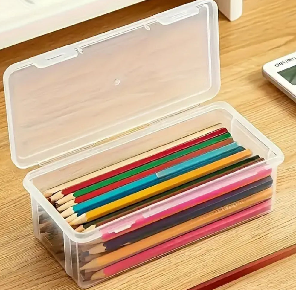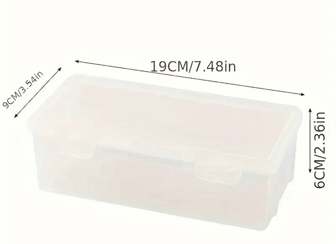 Een doorzichtige opbergbak van 19x9cm. De bak sluit met een kliksysteem en is door de vorm makkelijk om te stapelen.