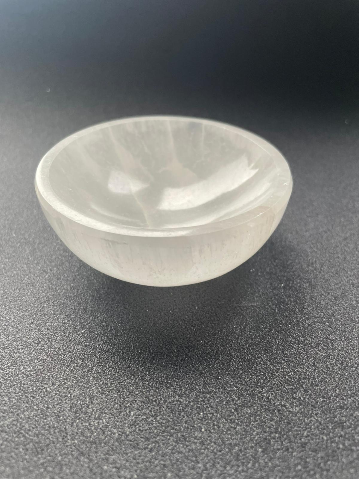 Een schaaltje van seleniet waar je niet alleen leuke decoratie in kan leggen, maar ook je andere edelstenen, zodat deze kunnen opladen. De schaal heeft een diameter van 8cm.