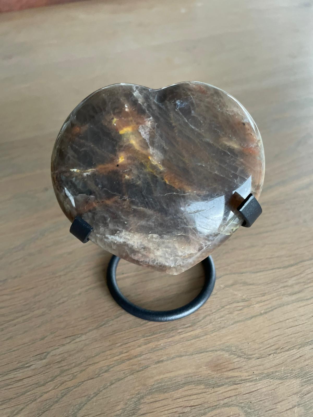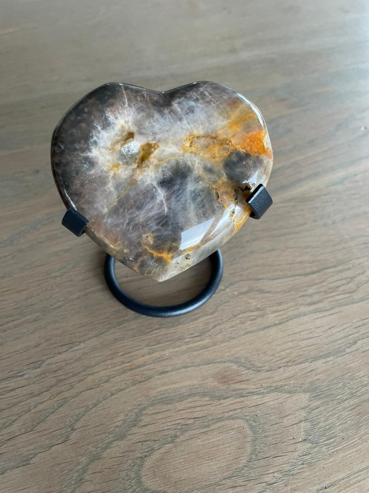 Zwarte maansteen in de vorm van een hart. Er zijn verschillende varianten beschikbaar.